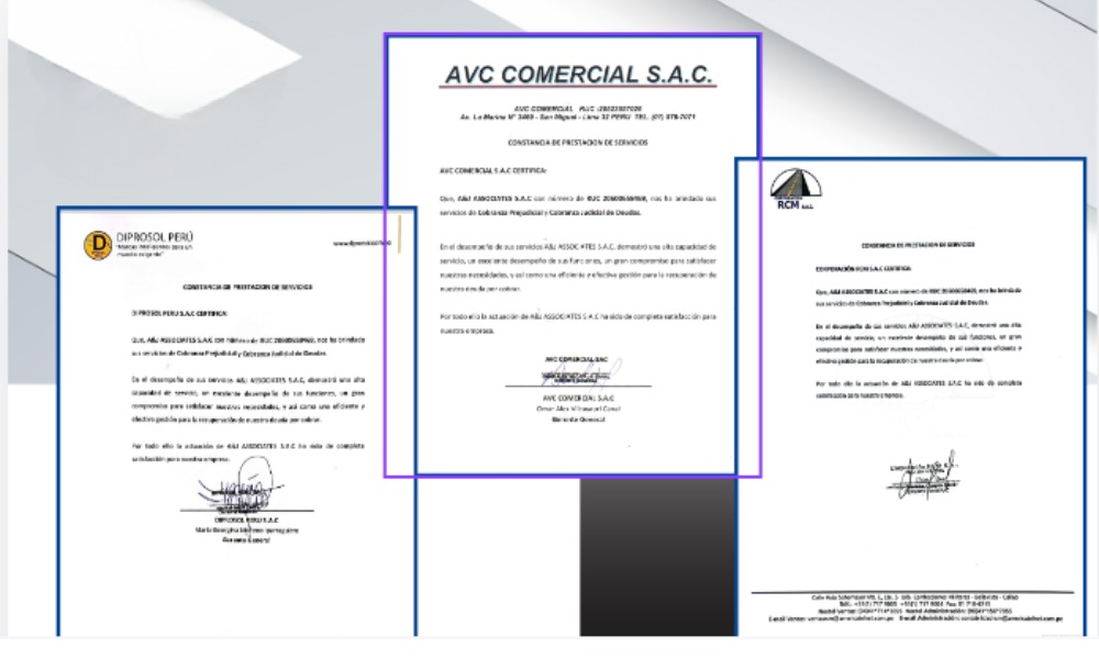 En A&J Associates, somos abogados especialistas en cobranzas con amplia experiencia en cobranza de deudas, cobranza de cheques y cobranza de facturas.